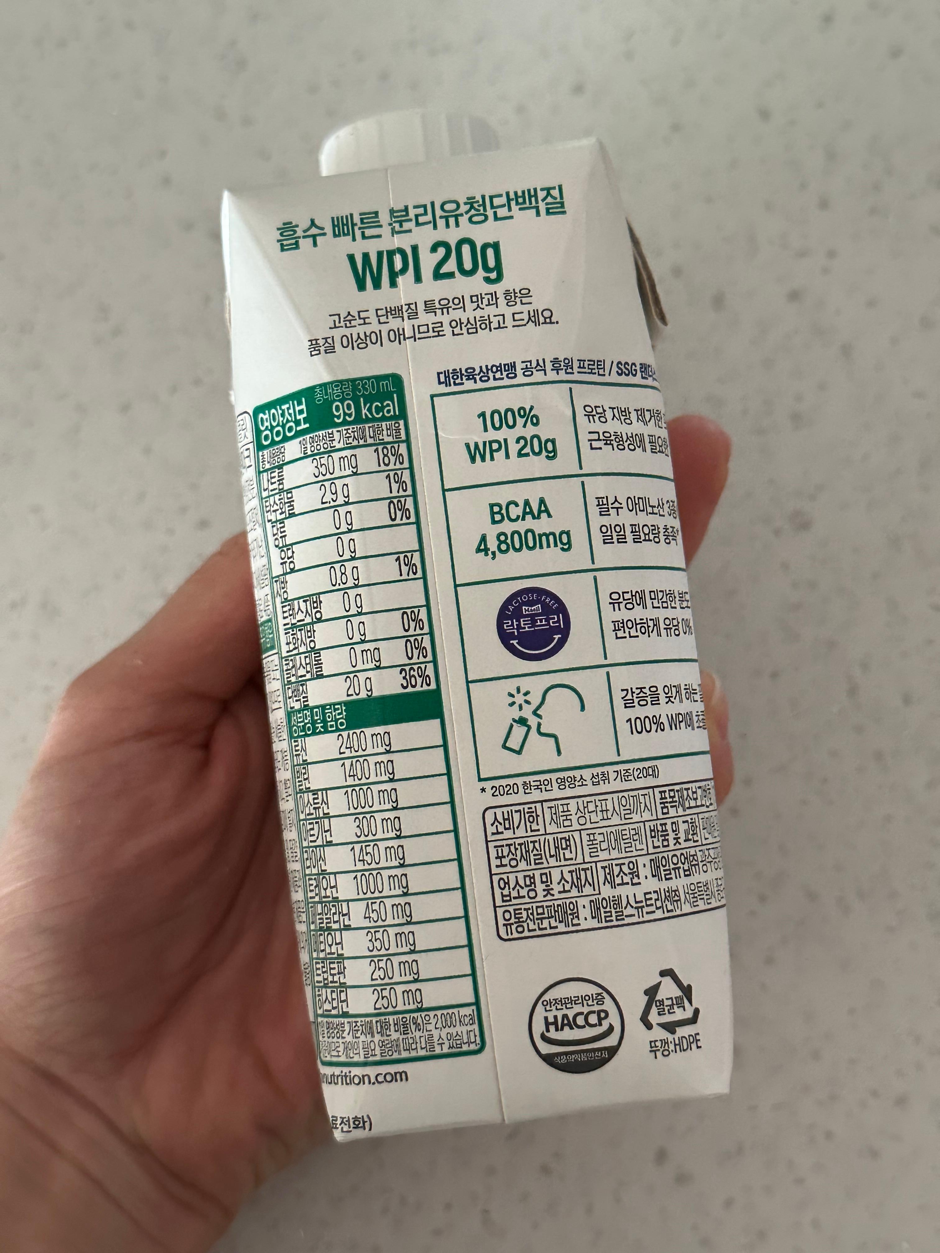 단백질 함량 : 1회 섭취 시 20G 이상 함유 여부